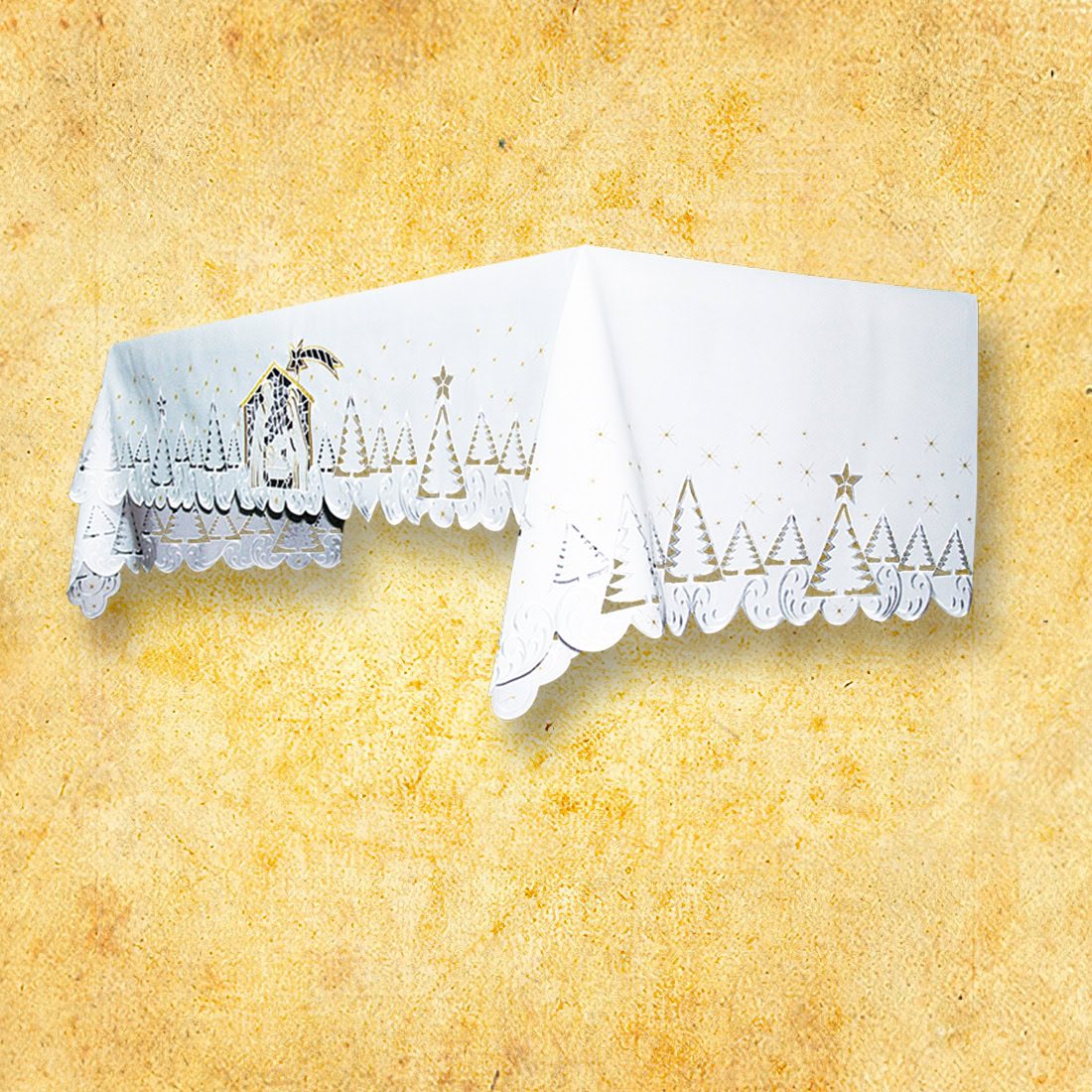 An elegant altar tablecloth, additionally decorated with “Nativity Scene” embroidery (at an additional cost), is a unique liturgical decoration. The tall embroidery, 31 cm high, is located on three sides of the tablecloth, emphasizing the solemn character of the Eucharist and festive celebrations. It is an excellent choice for parishes looking for durable tablecloths.gt;on three sides of the tablecloth, emphasizing the solemn character of the Eucharist and festive celebrations. It is an excellent choice for parishes looking for durable and aesthetic church tablecloths with embroidery.