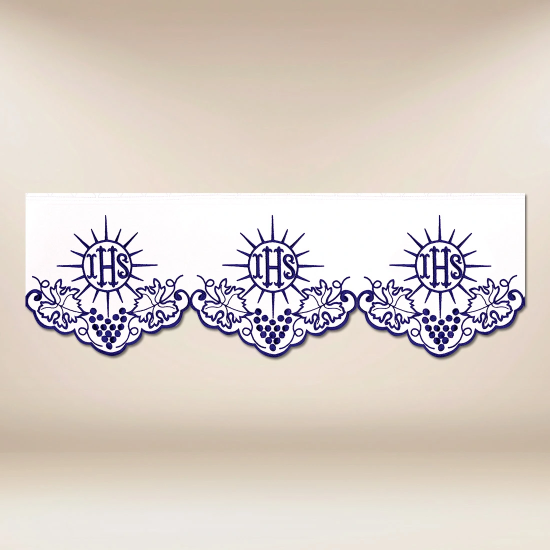Another distinctive element of our offer is the embroidered lace from the Cristiano set.Its modern, richly decorated pattern is perfect as an elegant sacred decoration. The Cristiano liturgical lace has been designed to harmonize with the other elements of the set. Embroidery height: 23 cm.