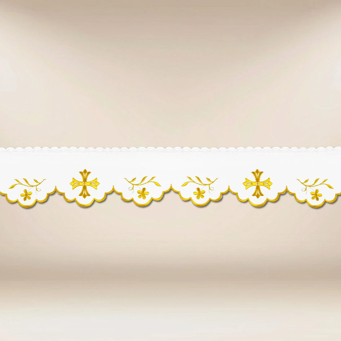 Embroidered lace “Golden Series” made of high-quality polyester fabric (100%) is an elegant and durable decorative element of the altar.