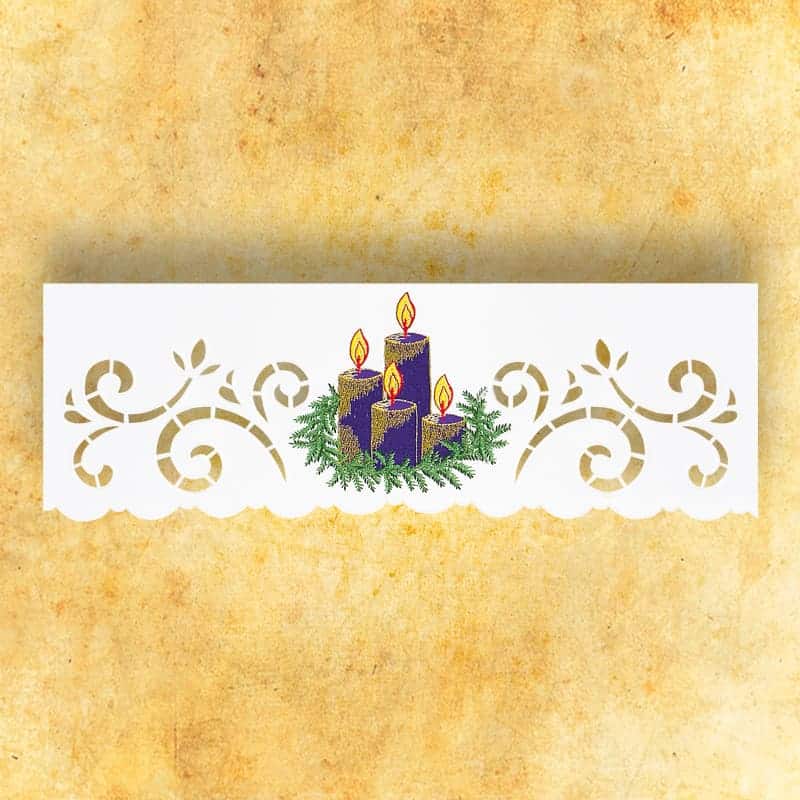 Embroidered lace from the “Avvento” set. Height 19 cm. Fabric: stain-resistant 100% polyester. Color: white. Washing: Recommended washing in an automatic washing machine at 40°C. Color powder, no fabric softeners.We also offer embroidered items: tablecloths (by the meter), tablecloths embroidered on the sides, napkins (45×45; 33×32), chalice linens, placemats (110×110; 95×95).
