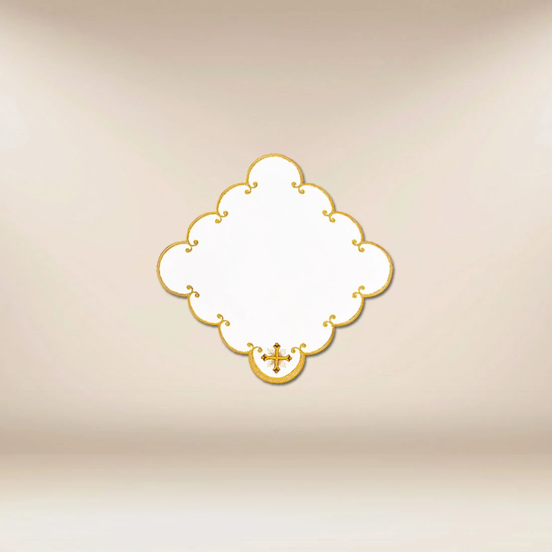The napkin is perfect as a covering for a side altar, a table in the sacristy, or as a decorative element in a chapel. It is an ideal choice for parishes that wish to combine tradition, elegance, and high-quality craftsmanship in every detail of liturgical furnishings.
