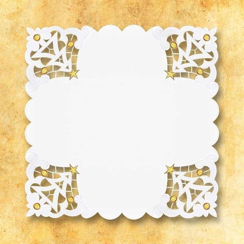 Embroidered napkin from the “Pasterka” setFabric: Stain-resistant 100% polyesterDimensions: 45cmx45cmColor: whiteWe also offer embroidered items:-tablecloths (by the meter)-napkins (33×32)-lectern-chalice linens-covers (110×110;95×95)-can dresses-lace
