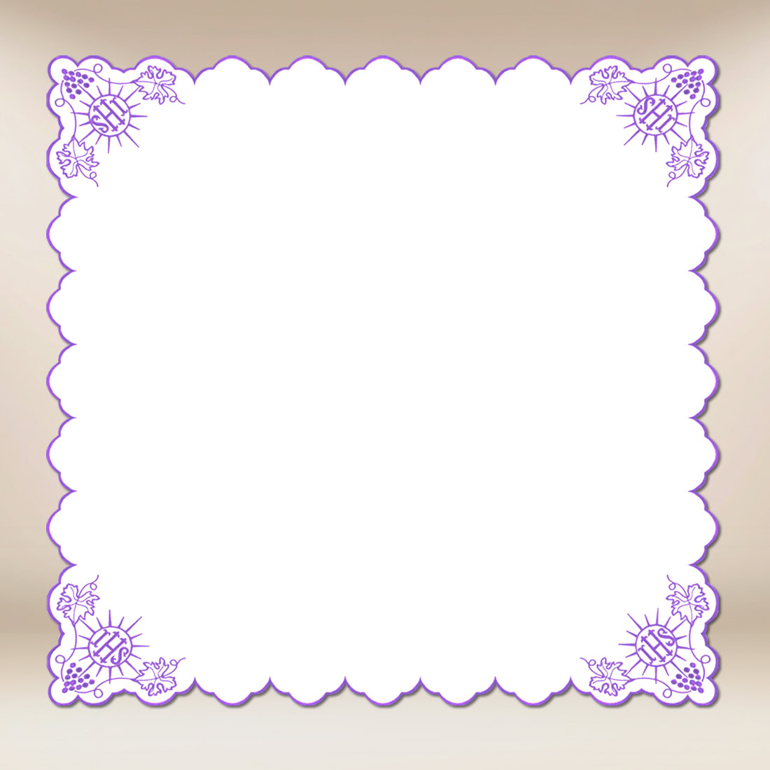 Embroidered altar linen measuring 110×110 cm is an exceptional liturgical overlay, designed for the dignified and beautiful preparation of the altar. The model featuring the Cristiano motif stands out for its precise embroidery and symbolic decoration placed in the corners. Purple – the color of penance and reflection – harmoniously emphasizes the character of the celebrations of Lent and Advent, serving as a subtle yet distinct complement to the liturgical space.