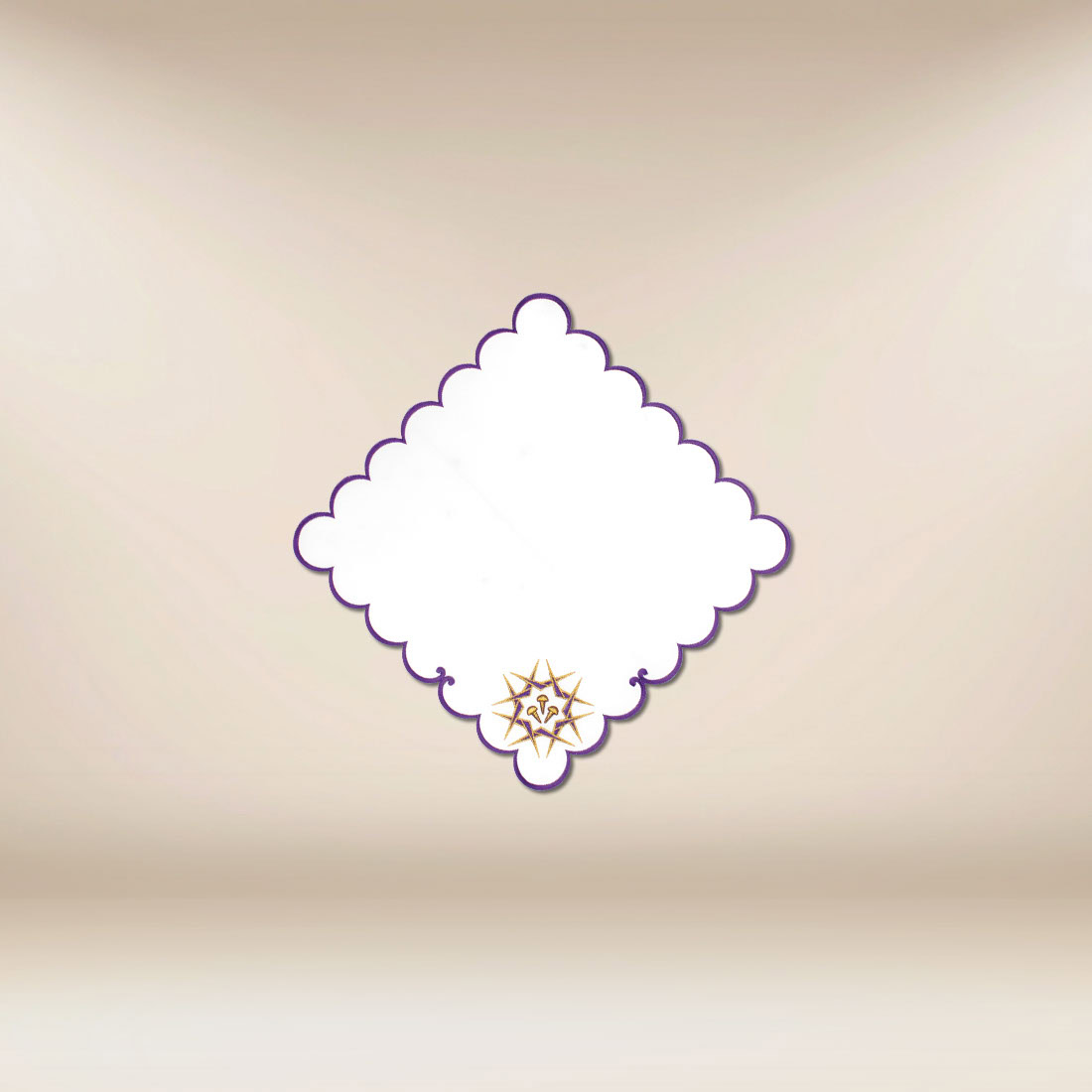 Lenten embroidered napkin 32×32 “Passion” has been designed as part of a liturgical set that particularly emphasizes the Passion aspect of the church year. Its presence on the altar introduces an atmosphere of silence, focus, and reflection, so characteristic of the celebration of Lent. The small format of the napkin allows for its harmonious integration into the space of the presbytery, both during the Holy Mass and Passion services.