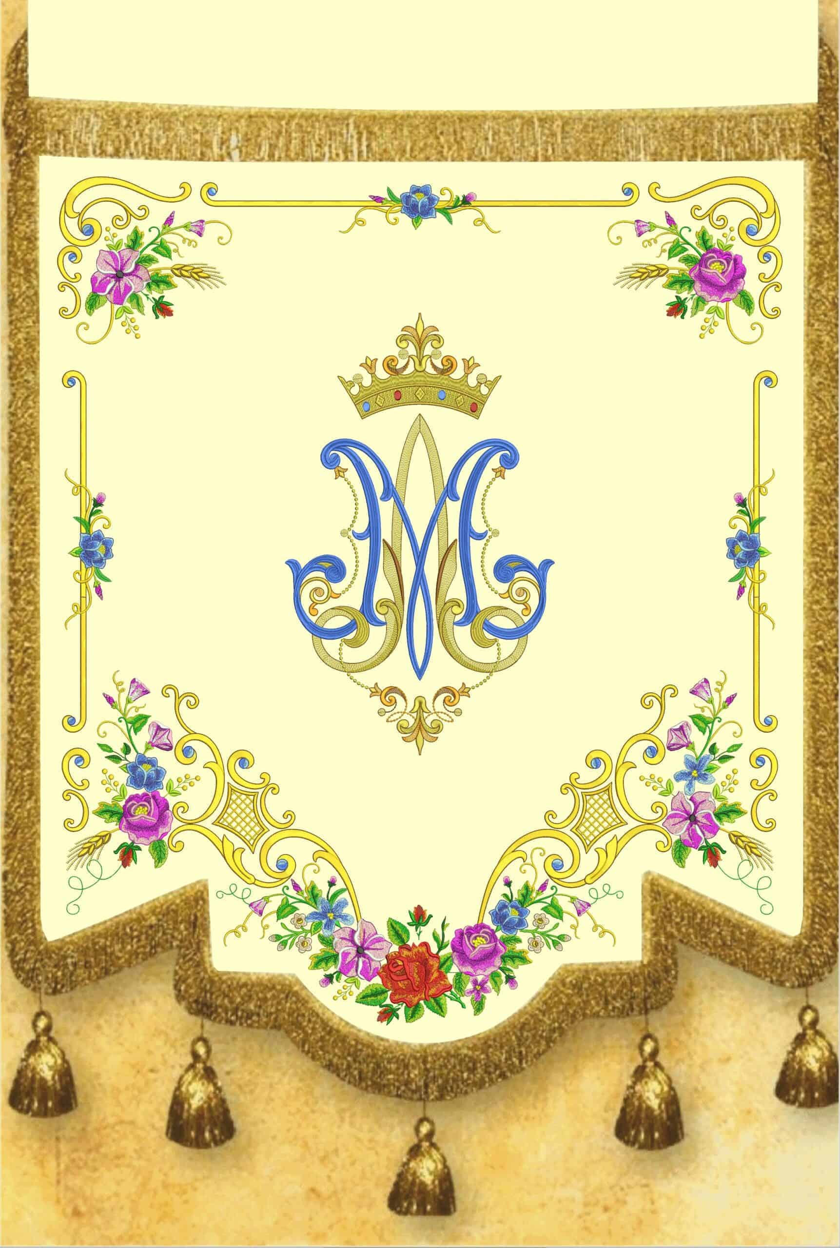 Banner made of ecru-colored Elan fabric, trimmed with gold fringe. Size: 95x130cmAdd a light-colored pole to your banner orAdd a dark pole to your banner.