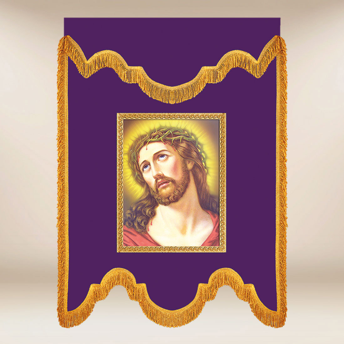The Purple Funeral Banner is designed for moments of reflection, prayer, and contemplation on the mystery of suffering, passion, and salvation. It is an elegant and spiritually expressive element of church, chapel, and parish community decor, subtly introducing the faithful into an atmosphere of focus and contemplation. It is ideal for Passion services, Holy Week processions, funeral liturgies, and other solemn occasions requiring gravity and reflection.