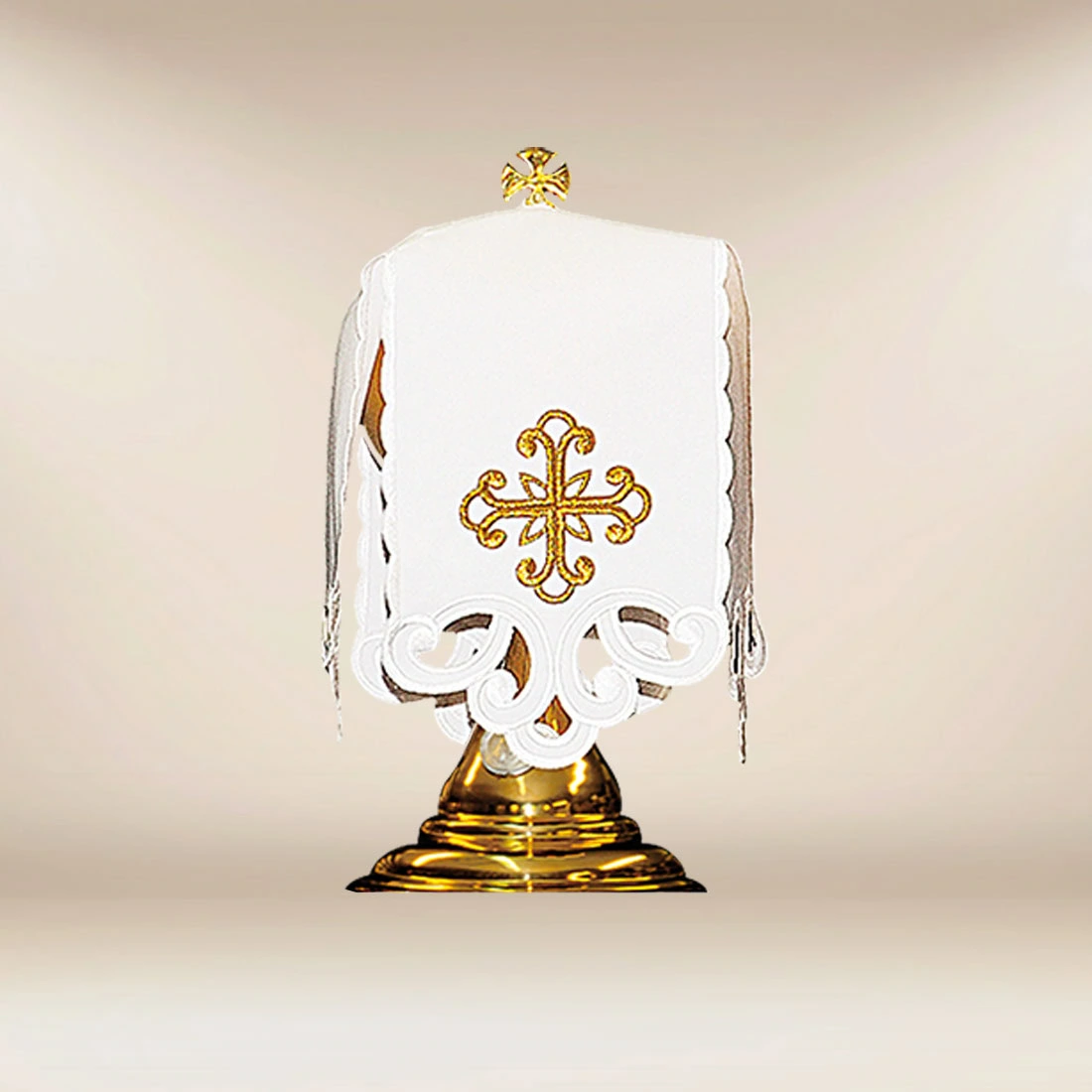 Ciborium veil Ornamencik has been designed as an elegant and functional element of liturgical equipment, serving the dignified storage of the Most Holy Sacrament. Its form is based on classic liturgical patterns, where simplicity and restraint become carriers of deep spiritual significance.