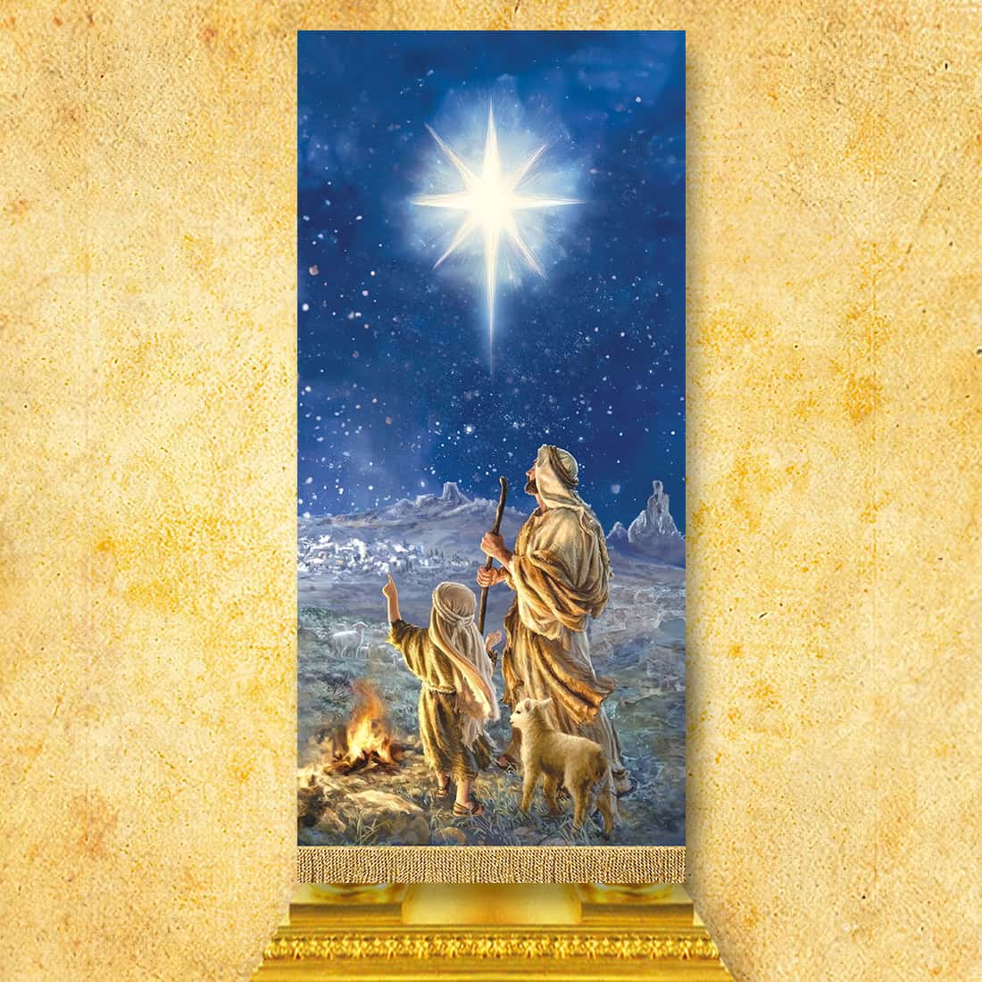 Photographic lecternThe lectern is made of high-quality white, smooth, stain-resistant, 100% polyester fabric.Gold tassels are sewn onto the bottom.Cover size: 55 cm x 150 cmModern technology for transferring images onto fabric, excellent quality, very durable, realistic colors.Can be washed and ironed.