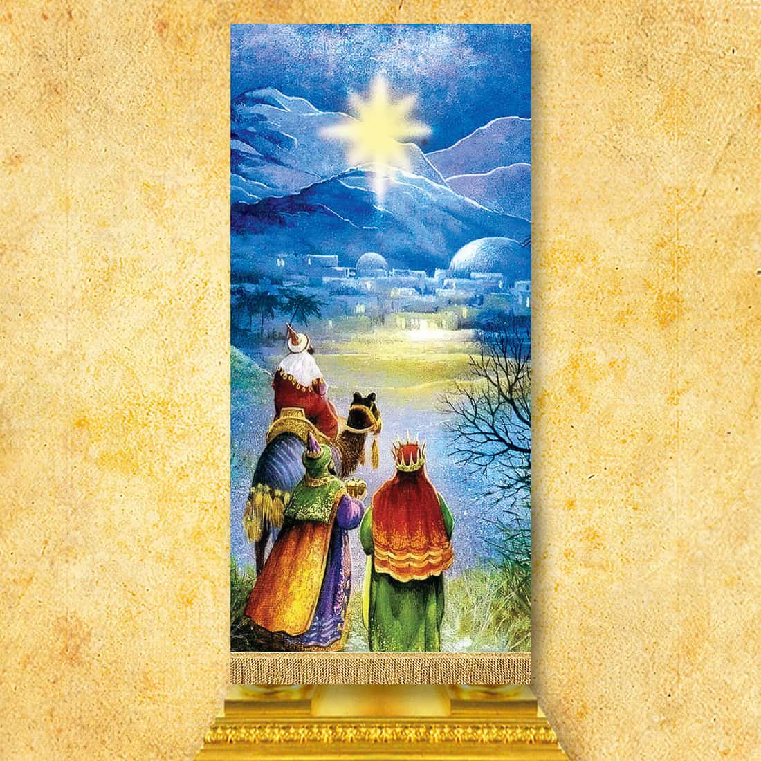 Photographic lecternThe lectern is made of high-quality white, smooth, stain-resistant, 100% polyester fabric.Gold tassels are sewn onto the bottom.Cover size: 55 cm x 150 cmModern technology for transferring images onto fabric, excellent quality, very durable, realistic colors.Can be washed and ironed.
