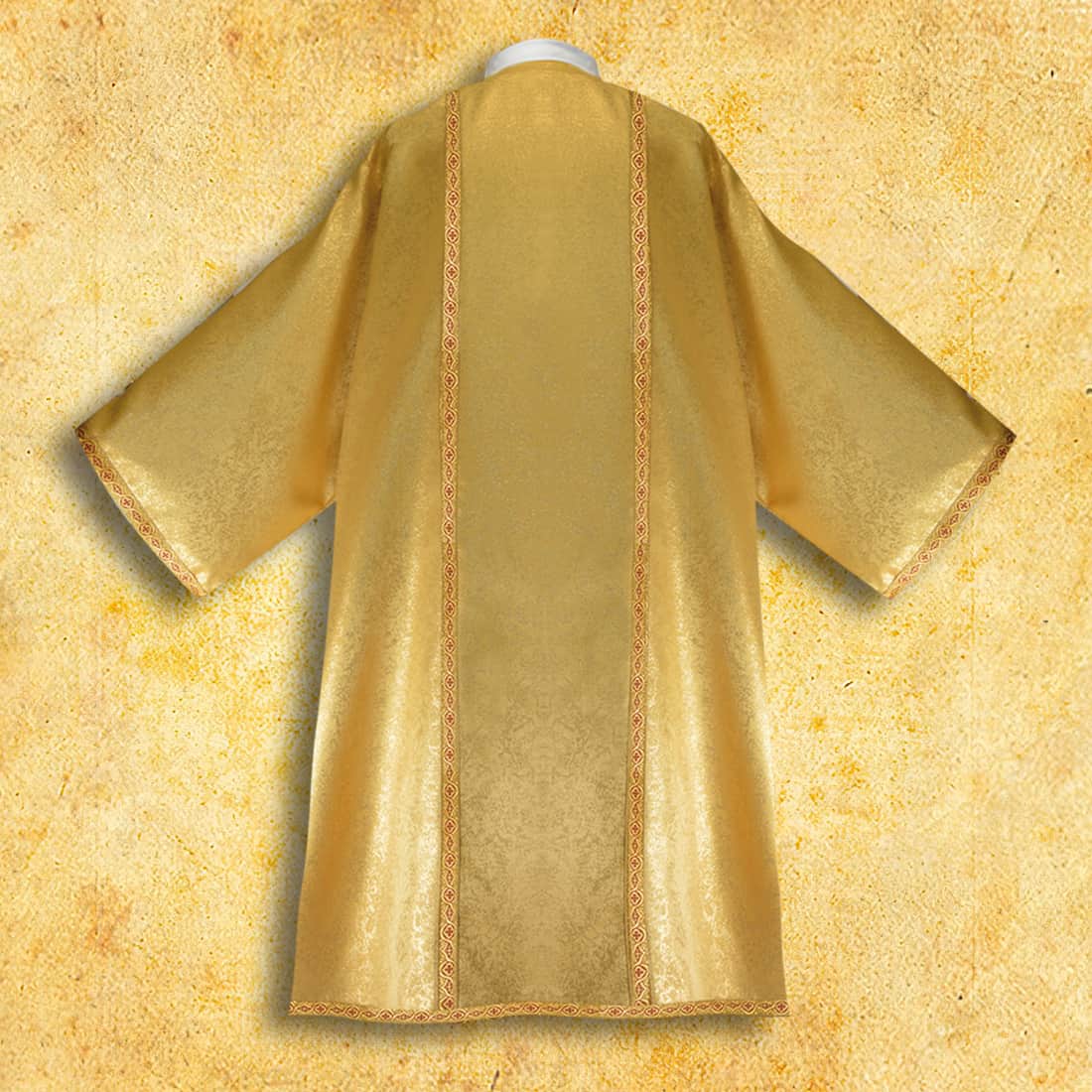 The liturgical dalmatic “Classico Gold” is made of Damastic Gold fabric, delicately shimmering with old gold thread.