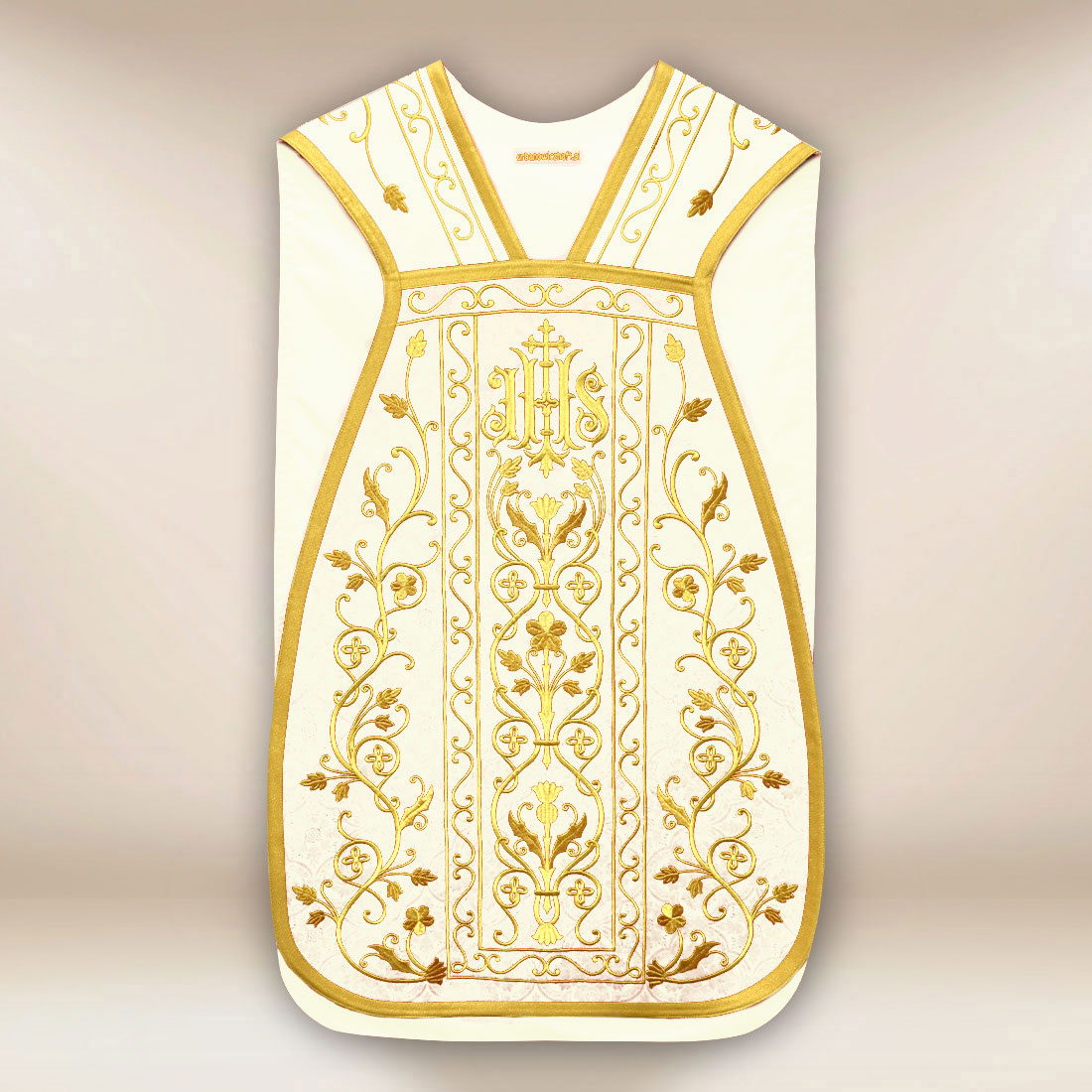 Urbanowicz Haft Polska – Roman chasuble embroidered in ecru is a liturgical garment with a light, noble character, intended for celebrations of a solemn and joyful nature.