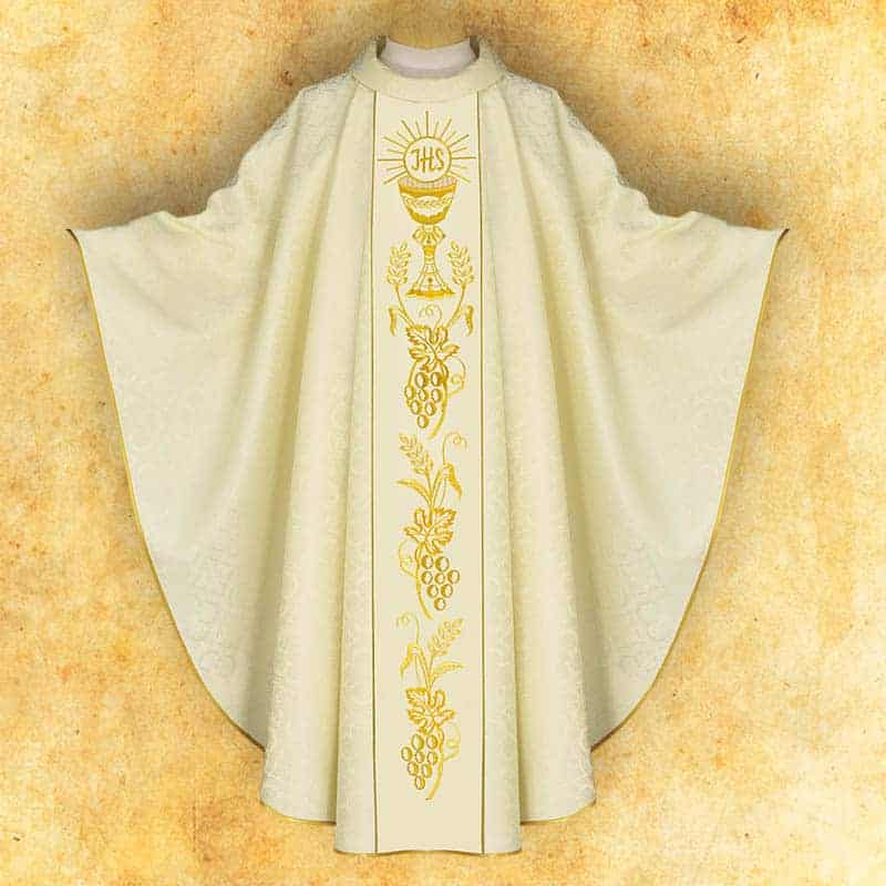 An exclusive liturgical vestment made of high-quality jacquard fabric with a satin finish, which is soft, delicate, and pleasant to the touch.