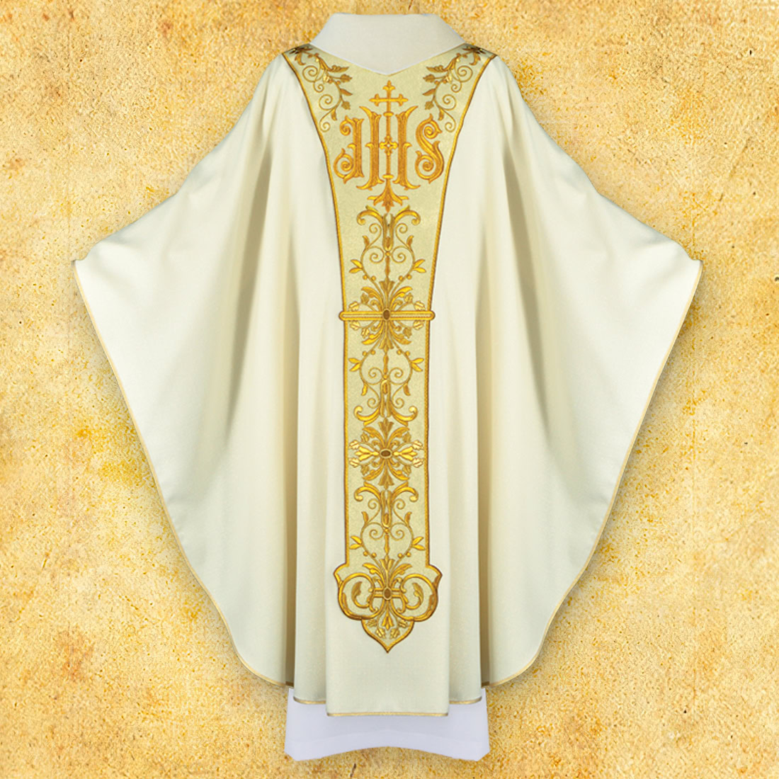 The chasuble fits perfectly and retains its shape thanks to its cut and the quality of the fabric.