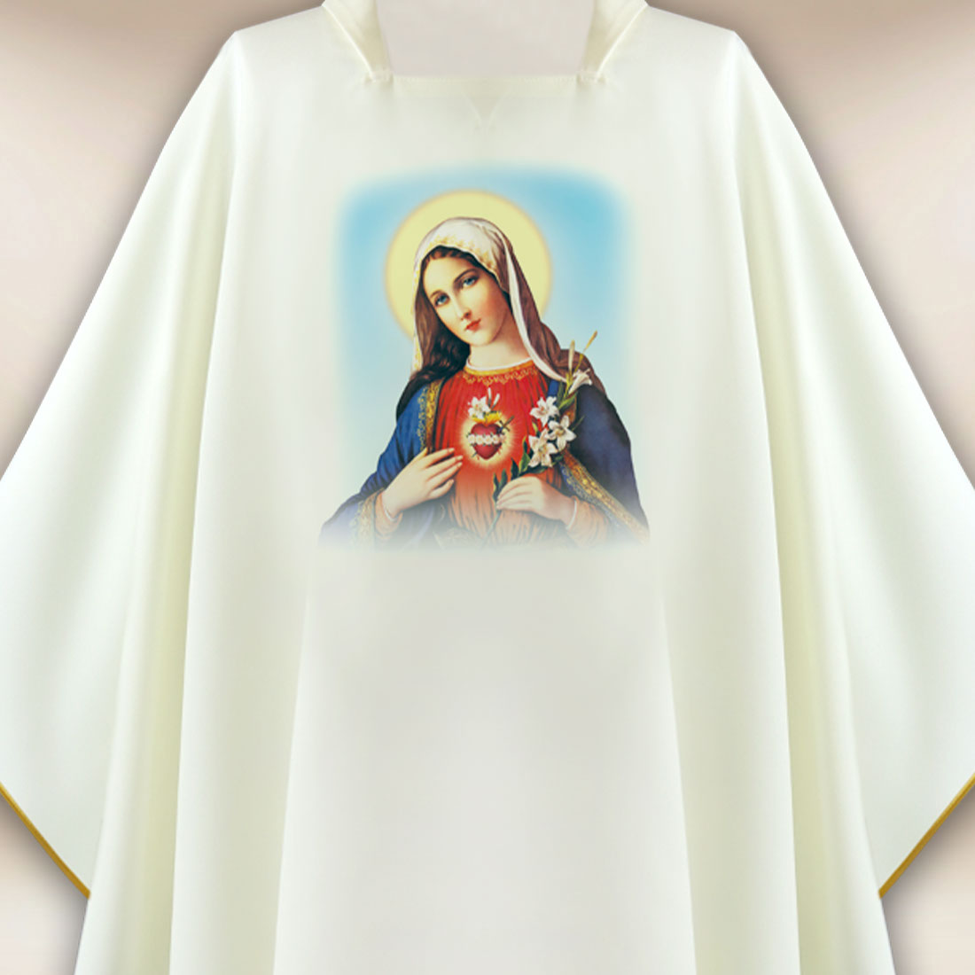 Chasuble with the Image of the Heart of Mary made from soft, lightweight Italian Tropic fabric, which drapes beautifully during liturgical celebrations.