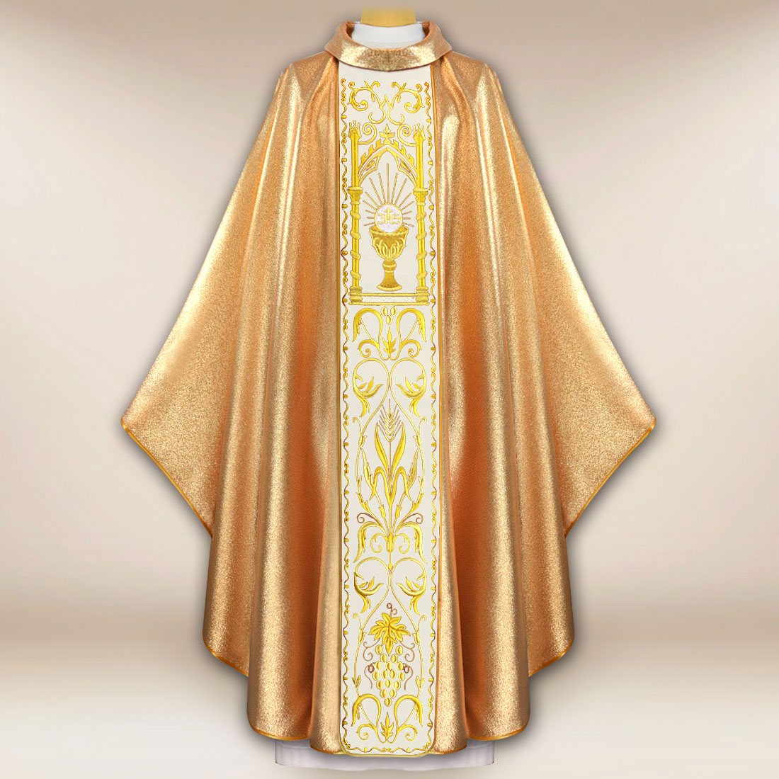 The embroidered liturgical chasuble “Chalice” is an exceptional vestment intended for solemn celebrations.