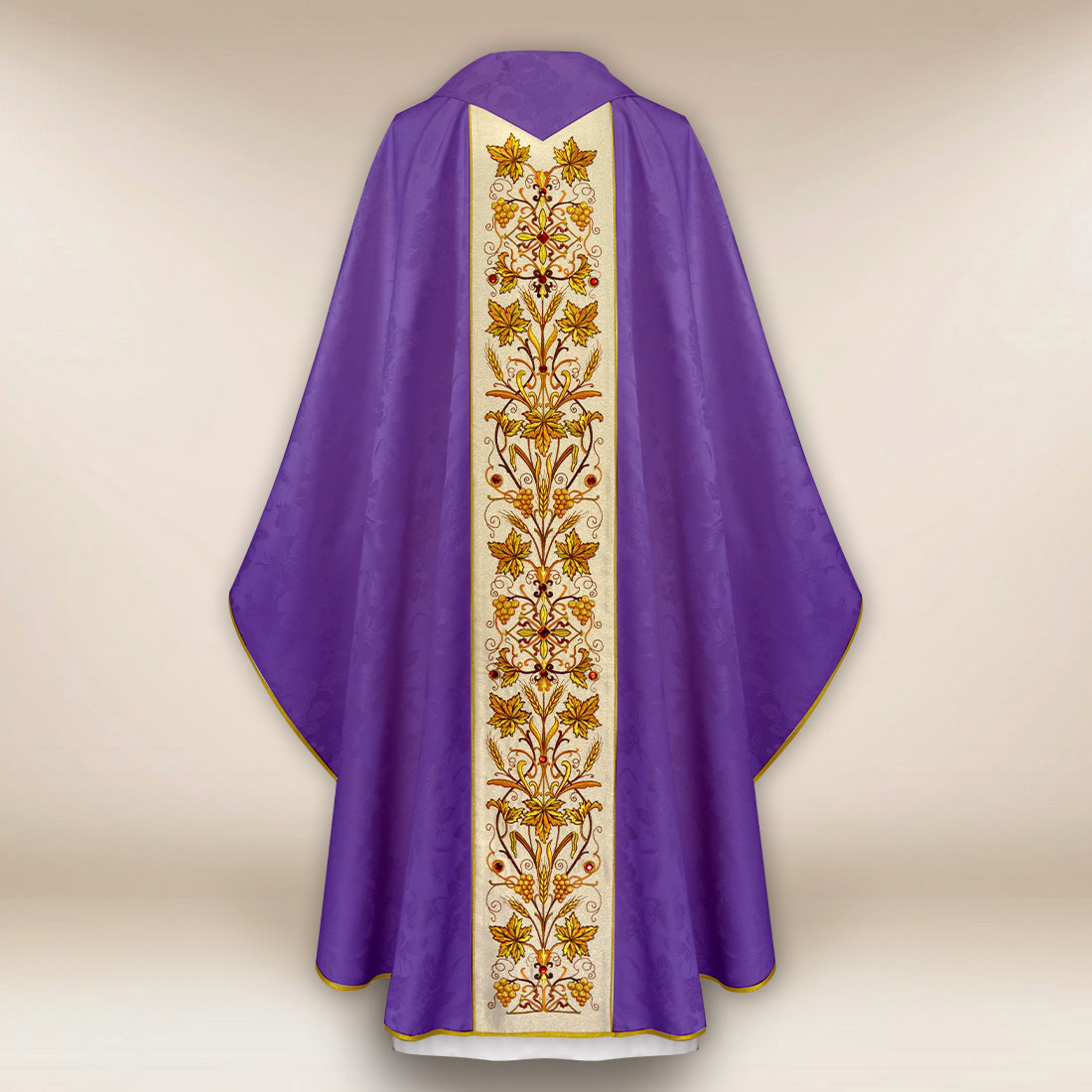 This model is for parishes seeking a vestment that combines classic beauty, rich symbolism, and exceptional craftsmanship. The purple embroidered chasuble in this form perfectly underscores the solemnity of the liturgical period, bringing depth, focus, and a sacred character to the celebration.