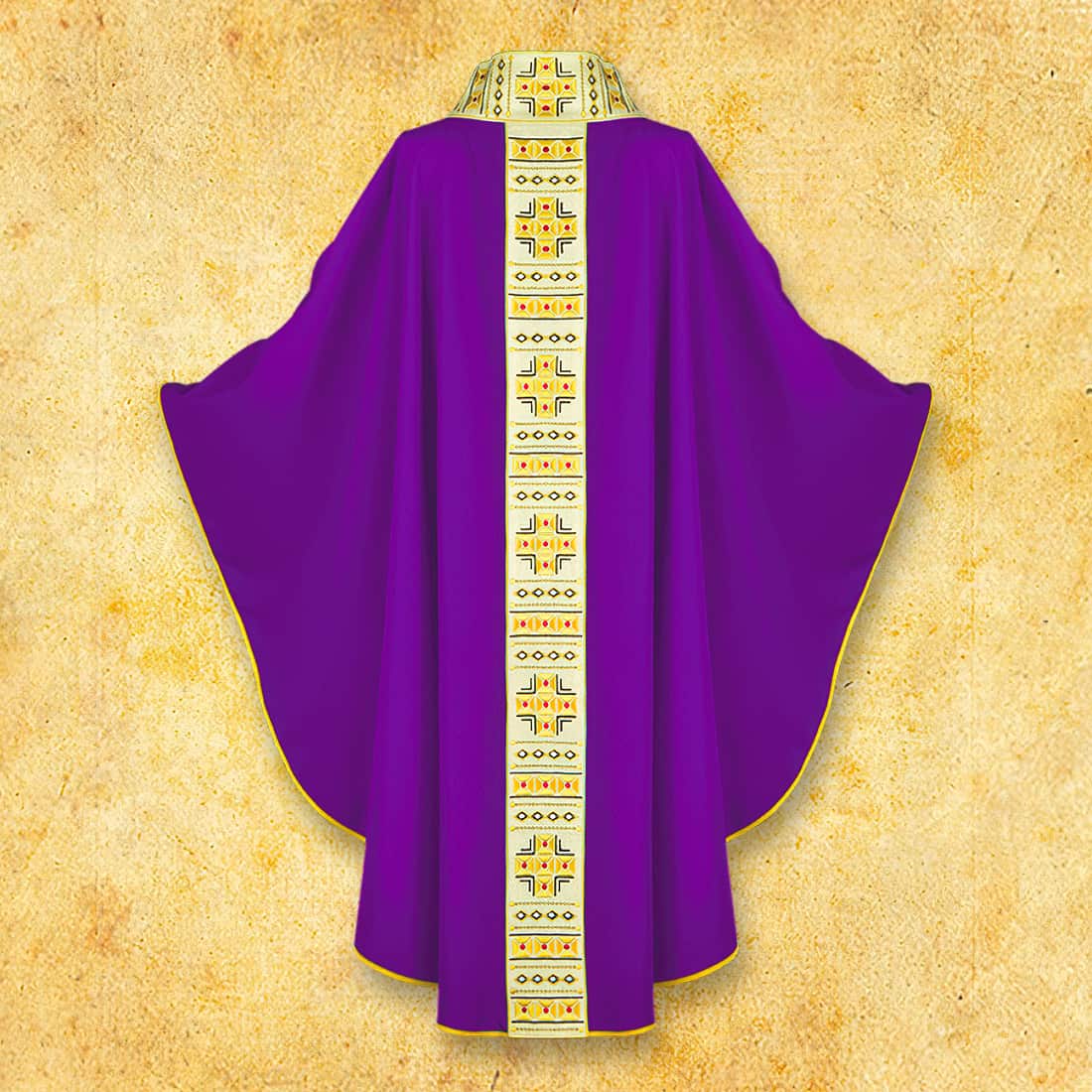 The fabric is soft, light, and pleasant to the touch, thanks to which the chasuble drapes perfectly and ensures comfort during celebrations.