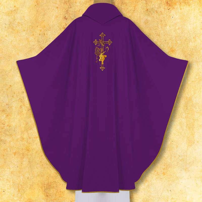 An elegant embroidered liturgical vestment made of high-quality “Italian Tropic” fabric, characterized by lightness, softness, and excellent durability.