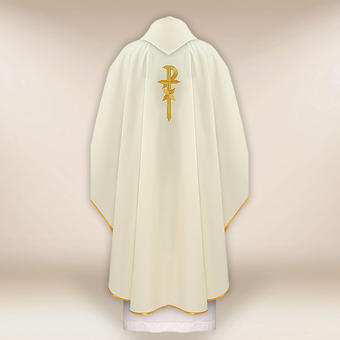 The fabric used for the set has been selected for its lightness, breathability, and elegant draping during the liturgy. The soft structure influences the natural flow of the vestment, providing the priest with freedom of movement in the presbytery. The addition of synthetic fibers enhances durability and resistance to creasing, ensuring that the chasuble maintains a representative appearance even with frequent use. The vestment is also easy to care for, which is appreciated by many parishes that use liturgical vestments intensively on a daily basis.