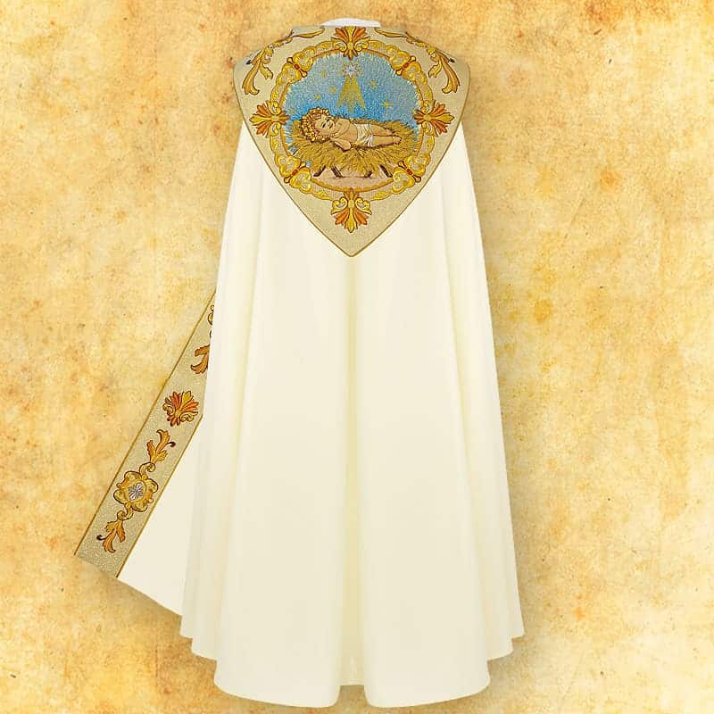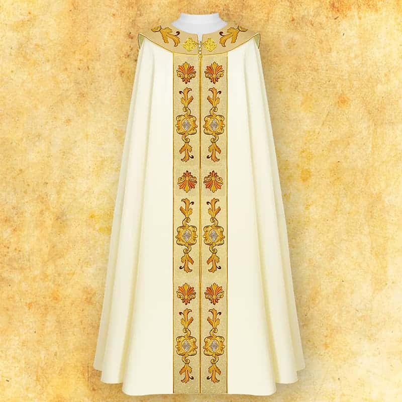 Chasuble made of high-quality satin-taffeta fabric. Lightweight, drapes well, soft, pleasant to the touch, and slightly shiny. Composition: a blend of natural and synthetic fibers. The chasuble includes an inner stole. One size fits all.