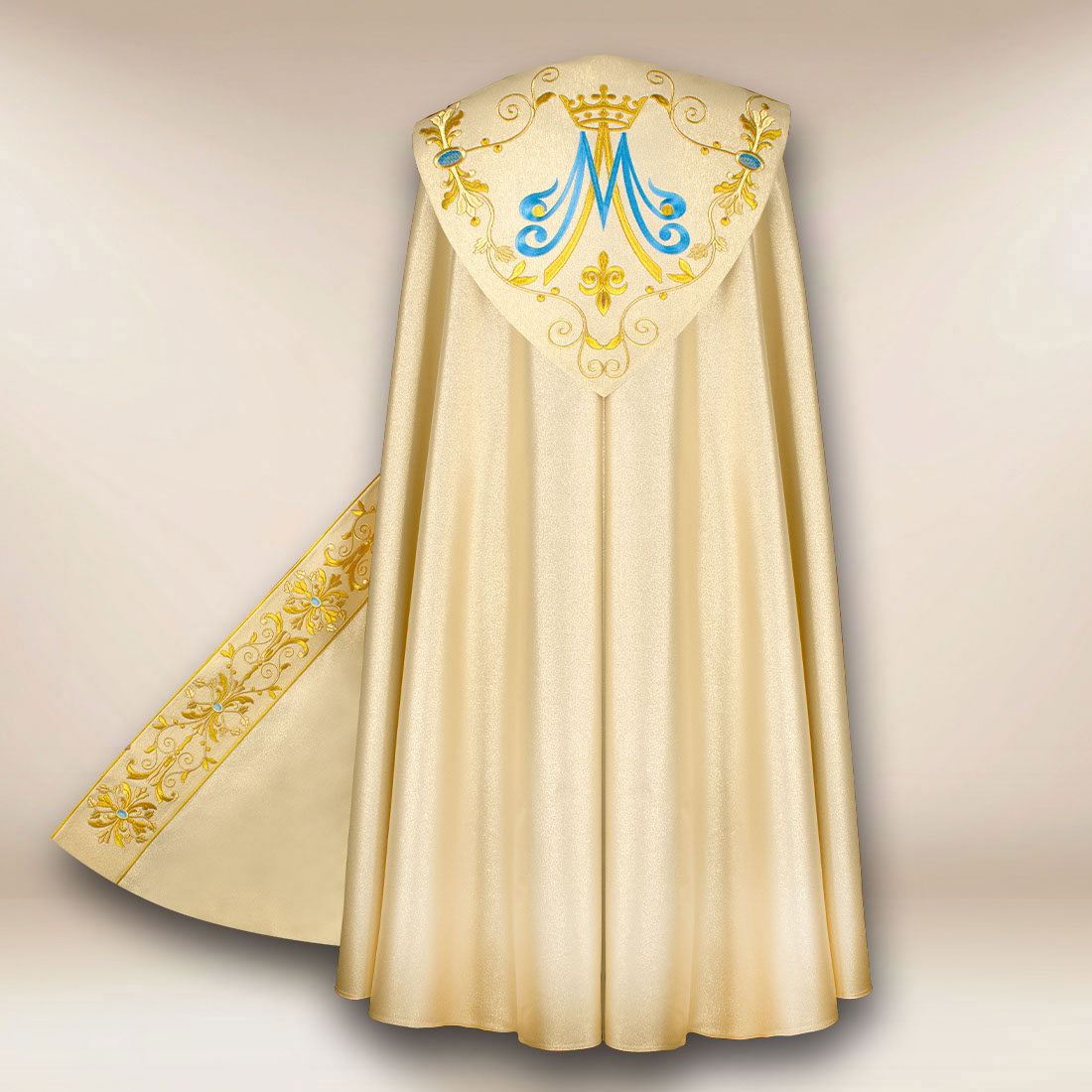 The form of the cope is conducive to celebrations of a solemn character, where the combination of symbolism with the elegance of liturgical attire is essential. Embroidered golden Marian cope will be perfect for rosary services, Marian processions, parish feasts, and holidays dedicated to the Blessed Virgin Mary, introducing an atmosphere of prayer and solemn focus.