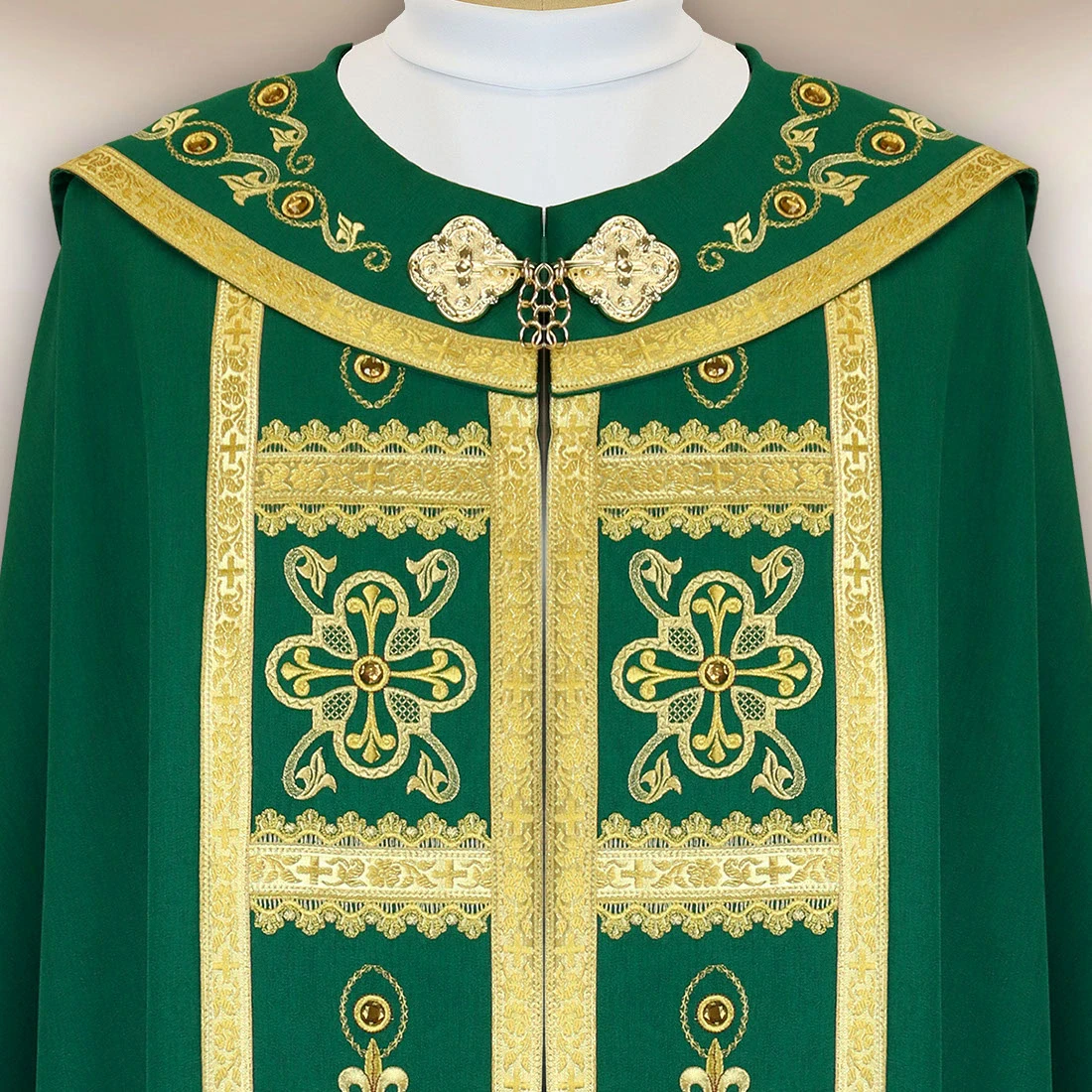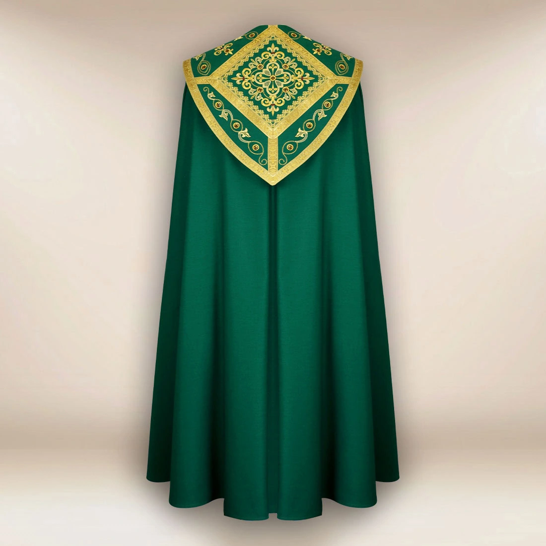 <p data-start="958" data-end="1203"&The set includes a matching inner stole, made of the same fabric and decorated with matching embroidery, creating an elegant, cohesive set. One size fits all, making the green embroidered liturgical cape fits every priest.