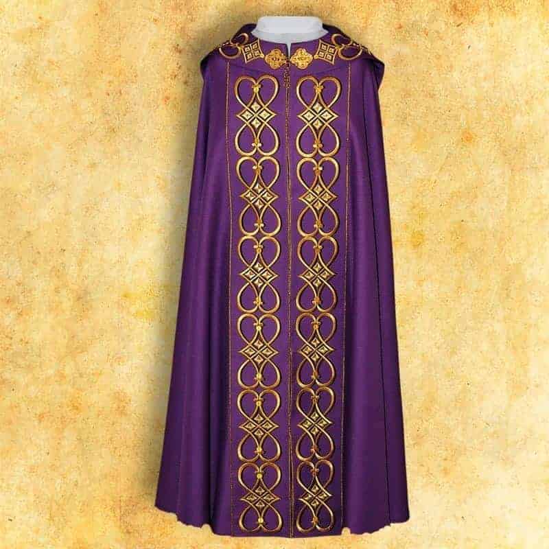 The cope is made of high-quality satin-taffeta fabric, which drapes well, is soft, pleasant to the touch, and slightly shiny. A blend of natural and synthetic fibers. One size fits all.