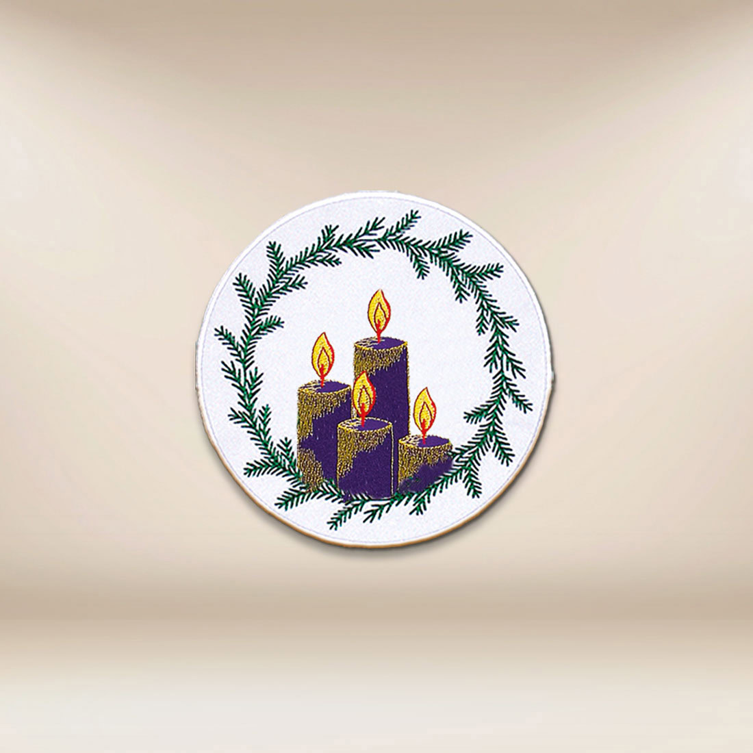 Embroidered Advent application featuring a wreath and four candles – a symbol of the time of waiting and hope.