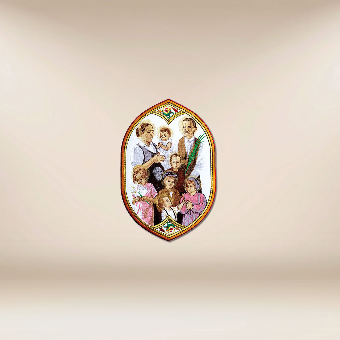 Embroidered Application Family of Ulma is a unique, meaningful motif that draws the eye and heart to the testimony of faith and selfless love for one’s neighbor. At first glance, the embroidered application Family of Ulma reveals a harmonious family scene, depicted with delicacy and respect.