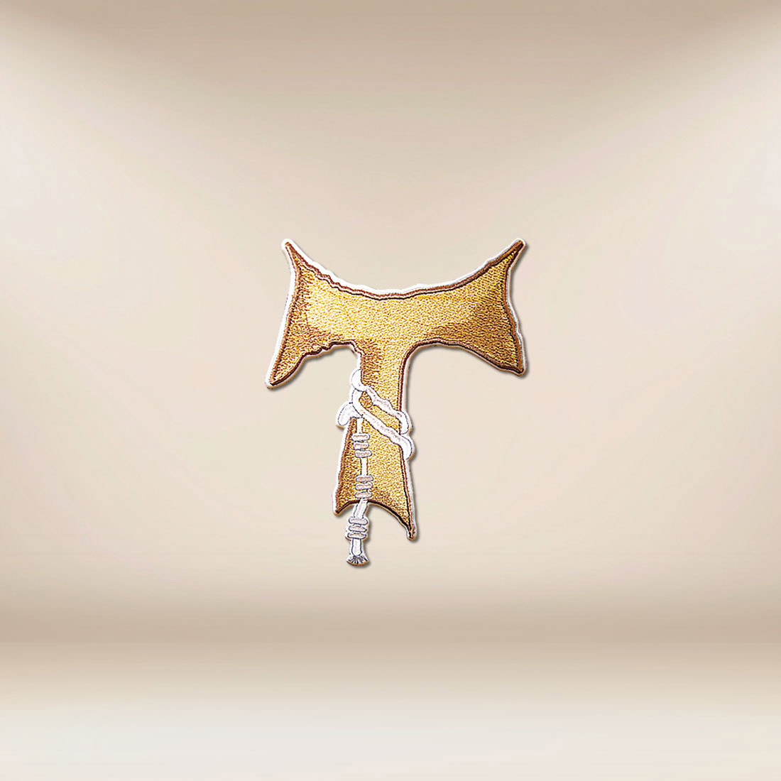 Embroidered application featuring the Franciscan Tau Cross – a simple and profound symbol of the spirituality of St. Francis, peace, and conversion.