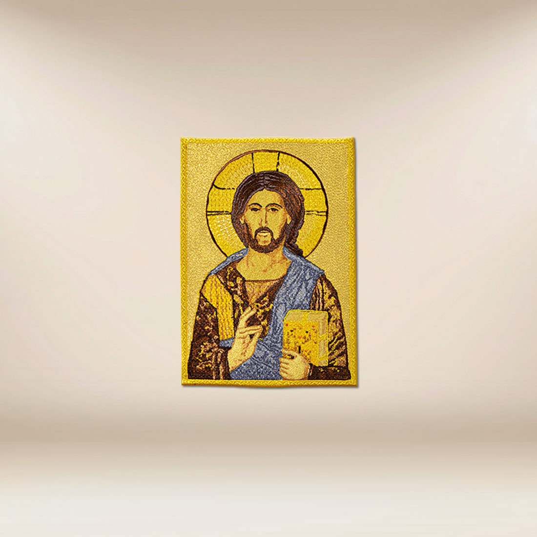 Embroidered Application Jesus Pantokrator is a choice for parishes, sanctuaries, and tailoring workshops seeking a classical image of Christ with high spiritual and aesthetic value, rooted in the tradition of the Church.