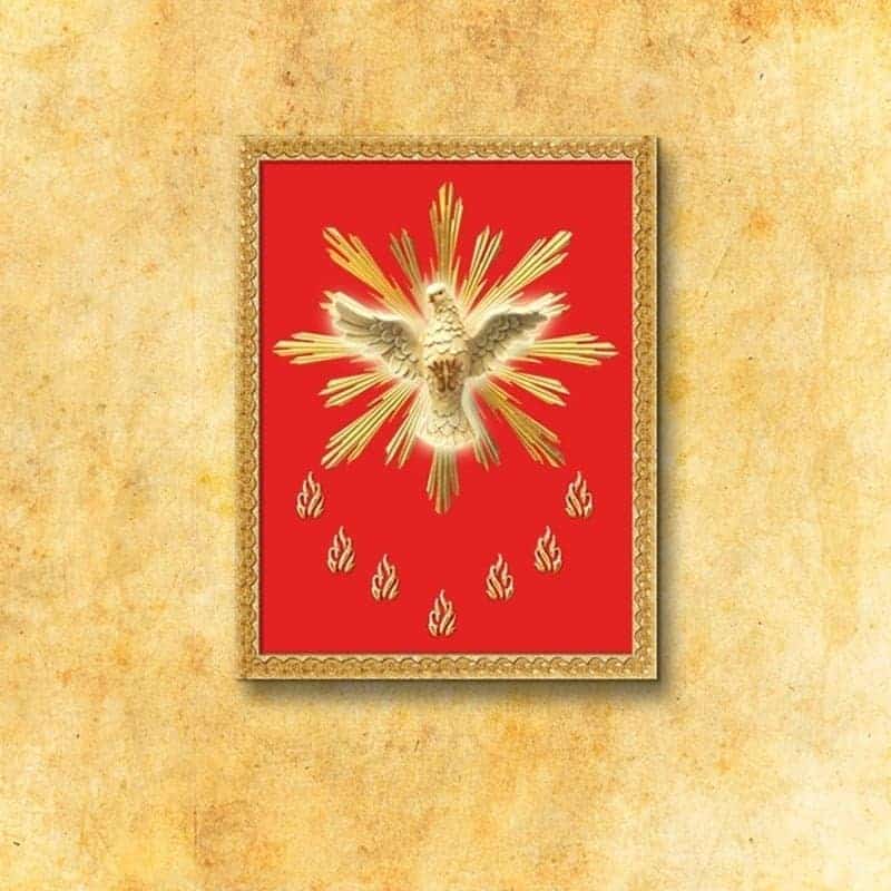 Image on fabric “Holy Spirit.” Modern technology for transferring images onto fabric. Excellent quality, very durable, weather-resistant, and realistic colors.The whole thing is trimmed with gold braid.The image is attached with a hot iron on the inside and then reinforced with stitches around the edges.