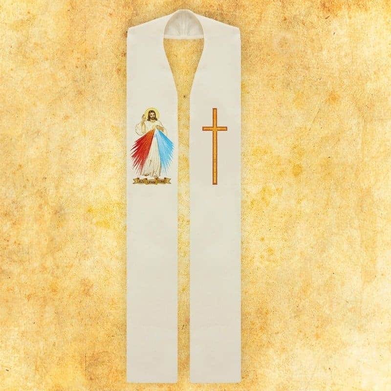 Liturgical stole embroidered with the Merciful Jesus combines traditional sacred embroidery, modern workmanship, and an affordable price, making it an excellent choice for parishes and individual priests.