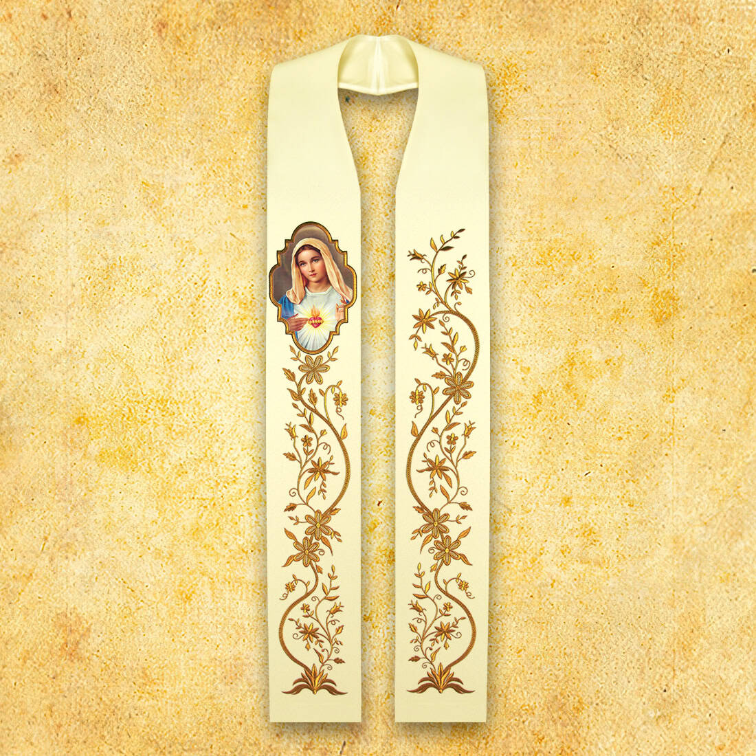 Embroidered Stole with Photographic Image “Heart of Mary”