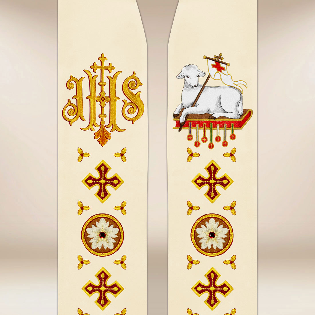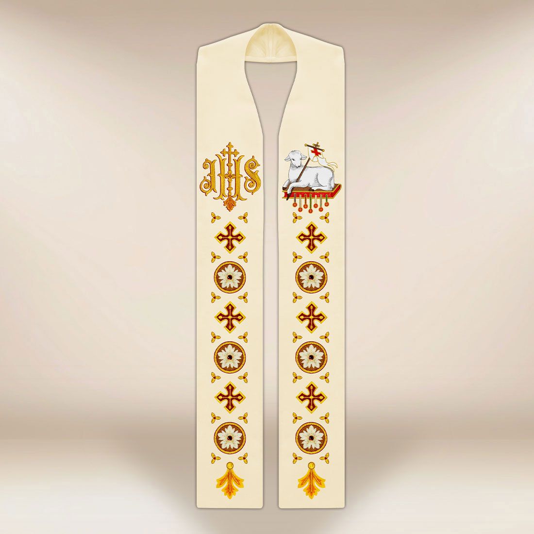 Thanks to the combination of classic cut, eucharistic symbolism, and refined craftsmanship, the liturgical stole embroidered with the symbol of the Lamb is an ideal choice for parishes that care about the beauty of the liturgy and the durability of sacred garments.