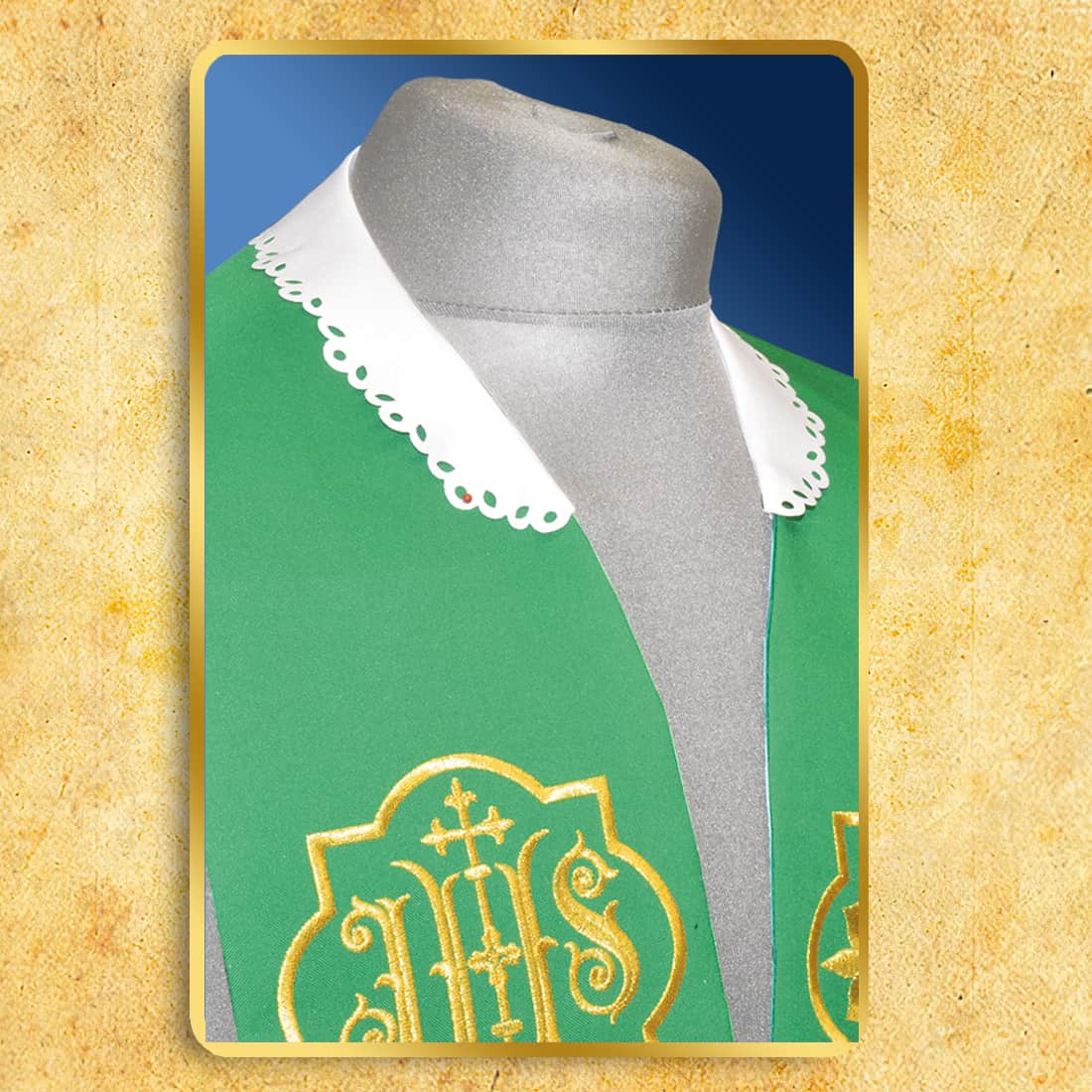 Replaceable collars for stoles made of white polyester fabric, stain-resistant, laser cut. Packaged in sets of 5.