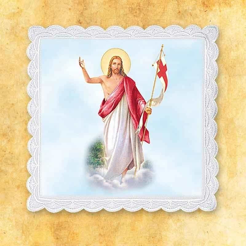 Photo no. 20 depicts the image of the Risen Christ – a symbol of the victory of life over death and light over darkness. Jesus, depicted in white robes with a red stole and a banner of victory, is the central motif, reminding us of hope, redemption, and eternal life. Bright, pastel colors and delicate color transitions give the entire composition a lightness and spiritual radiance, perfectly emphasizing the joyful nature of Easter.lt;/p>