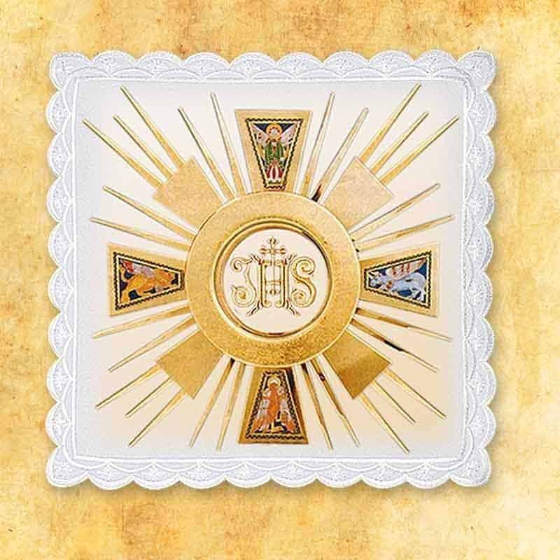 The print on our palms is made using a modern dye-sublimation method, which guarantees exceptional durability and high color quality. Thanks to this, the patterns remain intense and vivid even after repeated use, and the whole thing looks extremely aesthetic and elegant.nEmbroidered liturgical pallets are elegant covers for the chalice, serving both a practical and aesthetic function. Made of high-quality materials, they are decorated with durable embroidery depicting Eucharistic, Marian, or Christological symbols, which emphasize the importance of the liturgy and the beauty of the Holy Mass.Each pall contains a stiffening insert that ensures stability and comfort of use. Carefully selected fabrics and precise embroidery make our palls perfect for everyday priestly ministry and solemn liturgical celebrations.nModels are available in various liturgical colors, allowing for a perfect match to the liturgical season. At the customer’s request, we also offer staffs with individual embroidery or personalization.We also recommend:see/purchase gift box – perfect for storing or presenting the staff as a liturgical gift.