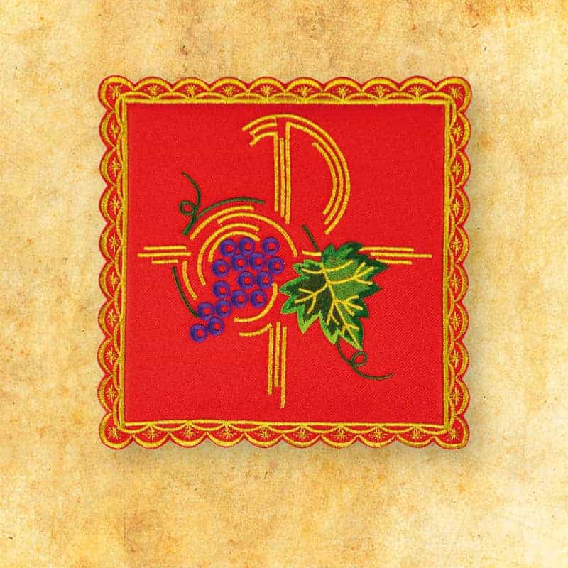 Embroidered red pallium No. 26 is an elegant piece of chalice linen, made of high-quality liturgical fabric in an intense red color. Decorated with rich embroidery depicting a vine and vine leaves woven into a geometric cross, it symbolizes the Eucharist, community, and the spiritual fruits of faith.Each embroidered pall is made in the Urbanowicz Haft Polska workshop.gt;embroidered pall is created in the workshop of Urbanowicz Haft Polska, where the tradition of sacred embroidery meets craftsmanship and attention to the smallest details. The use of gold thread, elegant trimmings, and fabric with a subtle sheen ensures a unique appearance and durability even with frequent use.The red color, symbolizing fire, the Holy Spirit, and Christ’s sacrifice, makes the staff ideal for Masses for martyrs, Pentecost celebrations, and Eucharistic celebrations. It combines beauty, functionality, and spiritual symbolism in one product.