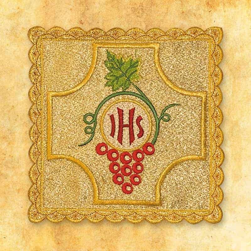 Gold embroidered palka No. 9 is an elegant element of chalice linen, made of high-quality liturgical fabric in gold. Decorated with precise embroidery depicting the IHS symbol surrounded by vines and a bunch of grapes, it emphasizes the spiritual significance of the Eucharist – the presence of Christ in the sacrament of the altar.Each gold embroidered pectoral cross No. 9 is made in the workshop of Urbanowicz Haft Polska, where the tradition of sacred embroidery is combined with modern workmanship and attention to every detail. Gold thread, decorative trim, and high-quality fabric guarantee durability, aesthetics, and liturgical elegance.The golden color of the staff symbolizes divine light, majesty, and glory, making it ideal for solemn celebrations, church holidays, and special occasions in the liturgical year. It is a combination of beauty, spiritual depth, and top-class Polish craftsmanship.n