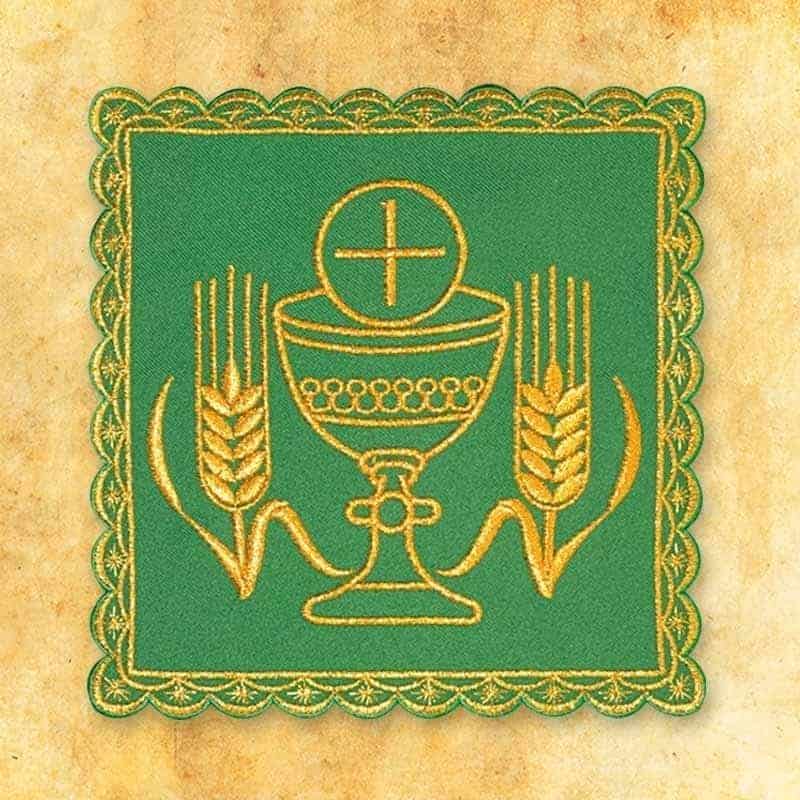 The color green, a symbol of hope and rebirth, makes the green embroidered pallet perfect for the ordinary time of the liturgical year. It is not only a functional element protecting the chalice, but also a beautiful altar decoration, emphasizing the solemn nature of the celebration.