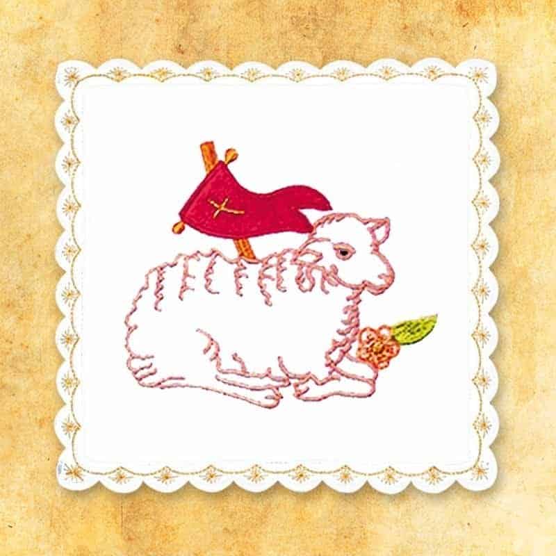 The white embroidered pallium no. 20 is an elegant and symbolic element of chalice linen, decorated with the image of the Lamb of God – one of the oldest and most profound symbols of Christianity. The Lamb holding the banner of victory reminds us of Christ’s redemption and triumph over sin and death.