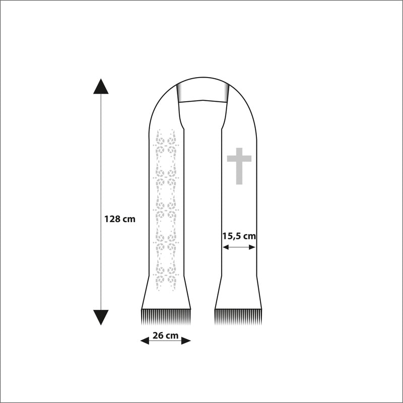 The universal size ensures that the stole fits every priest and perfectly complements traditional chasubles and liturgical copes in red. The set includes two laser-cut collars that maintain an elegant line of the stole and enhance wearing comfort.