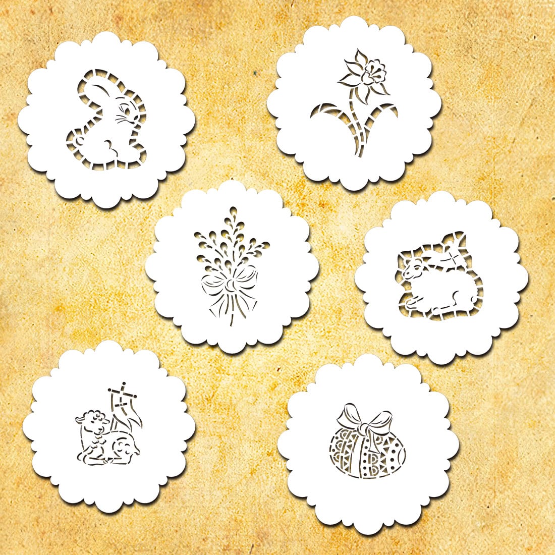 Laser-cut napkins. Stain-resistant fabric, 100% polyester. Diameter 10 inches. Set of 6 napkins with different Easter-themed designs.