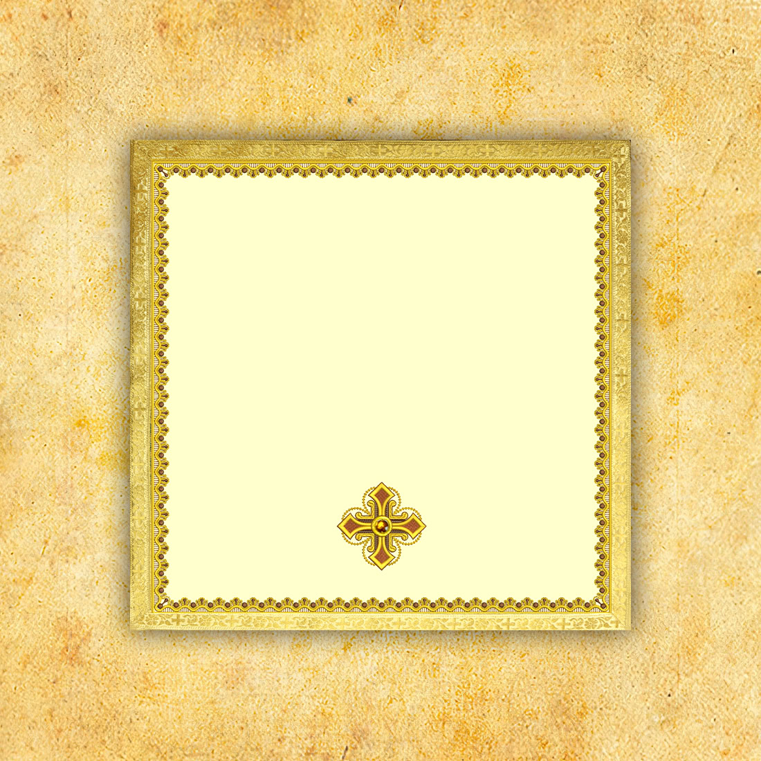 Liturgical wveil for the chalice made of high-quality “Satinowool” fabric.nThe fabric is exceptionally soft, delicate, and drapes beautifully, emphasizing the elegant character of the veil.The whole is decorated with rich gold thread embroidery, hand-decorated stones, and finished with shiny jacquard trimmings.The 55×55 cm liturgical veil is the perfect choice for a solemn Mass, emphasizing the beauty and sacred character of the altar chalice.