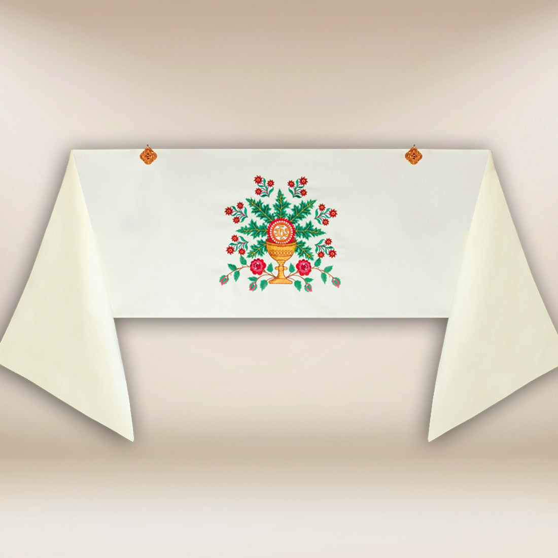 The classic form of the veil ensures proper positioning during ceremonies, and the careful finish emphasises its dignified and representative character. The humeral veil is suitable for both daily ministry and solemn celebrations, expressing respect for tradition, beauty and the spiritual depth of the liturgy.