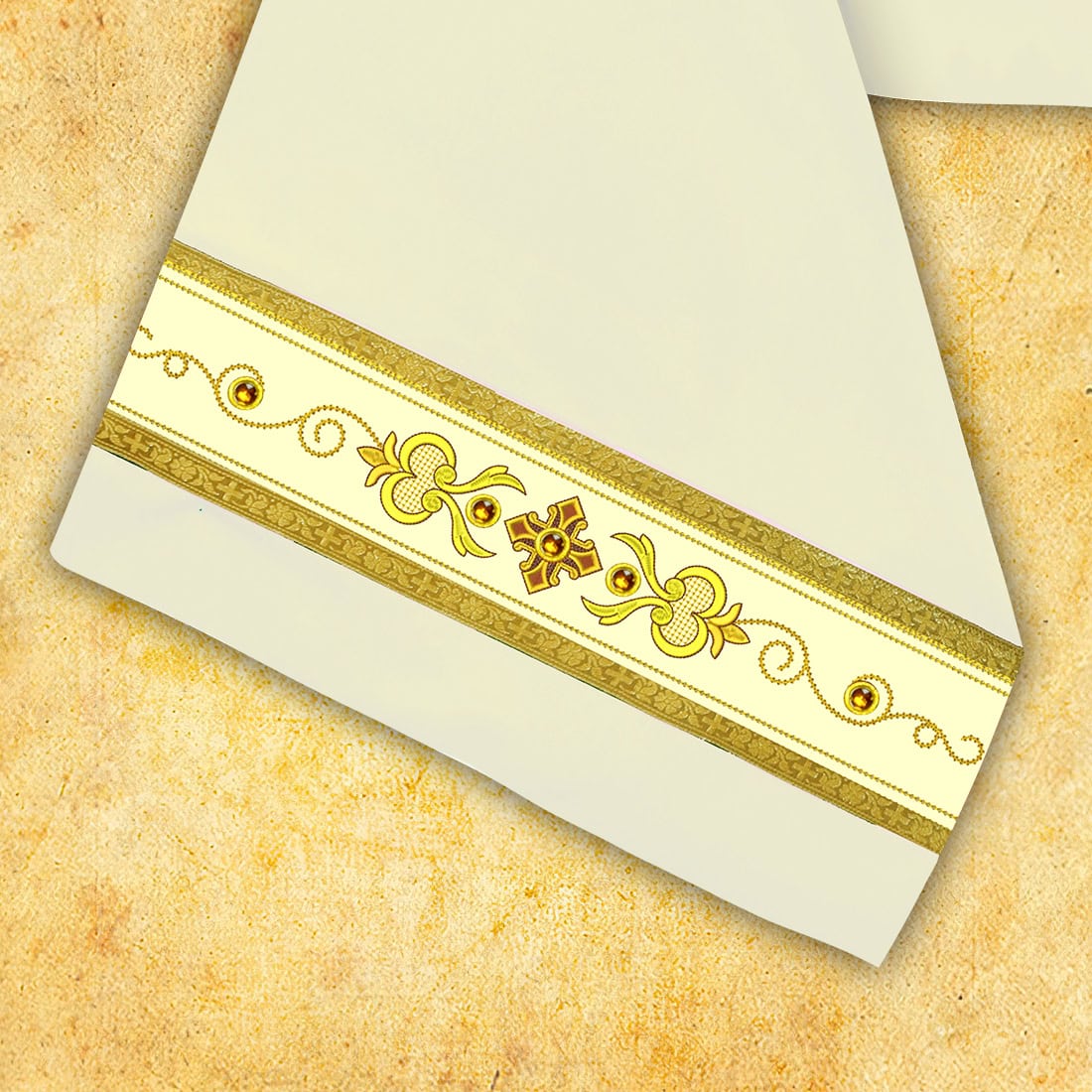 Liturgical embroidered shoulder veil made of soft “Satinowool” fabric.Decorated with subtle stones, gold buckles, and elegant tabs, it combines tradition with aesthetics. Made of the highest quality materials, it guarantees durability and beauty for years to come. One size fits all – an indispensable piece of church equipment.